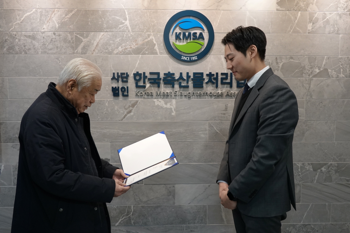 2월 11일(수) 오전 10시 협회 사무실에서 인사발령에 따른 대리 임명장 수여식이 진행되었습니다. 이날 수여식에서는 한국축산물처리협회 김명규 회장이 해당 직원에게 대리 임명장을 수여하였으며, 향후 협회 발전과 맡은 직무에 대한 책임감을 갖고 업무에 임해 줄 것을 당부하였습니다. 임명장을 수여받은 직원은 맡은 바 직무를 성실히 수행하여 협회와 도축산업 발전에 기여하겠다는 뜻을 밝혔습니다.