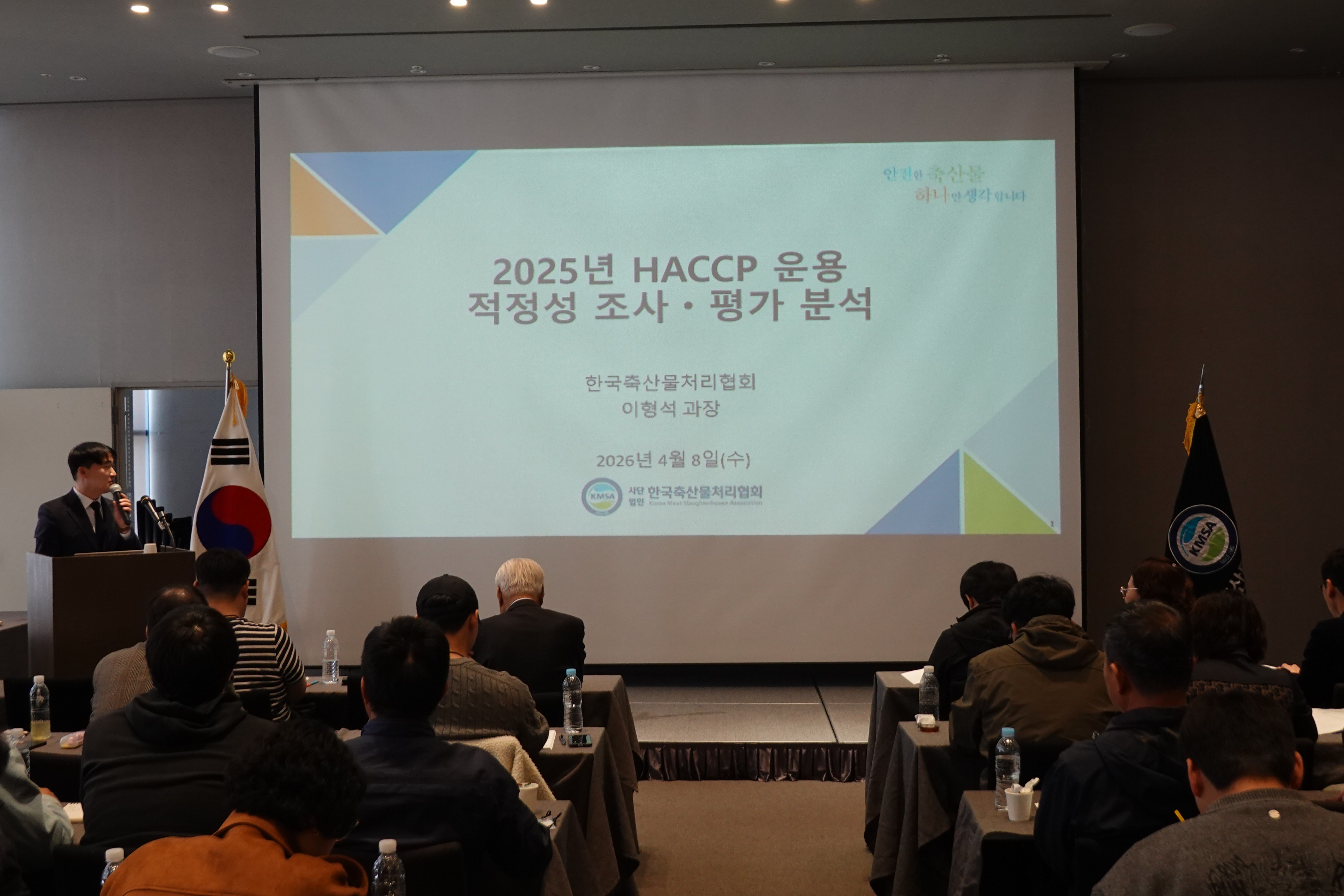 네 번째 강의는 한국축산물처리협회 이형석 과장이 ‘2025년 HACCP 운용 적정성 조사·평가 분석’을 주제로 최근 3년 결과를 기반으로 우수 및 미흡 관리 항목을 분석하여 강의하였습니다.